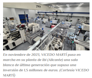 En concreto, el pasado mes de noviembre de 2023, VICEDO MARTÍ llevó a cabo la apertura de una nueva sala blanca de última generación tras invertir en ella y en nuevos equipos de producción, cerca de 1,5 millones de euros.